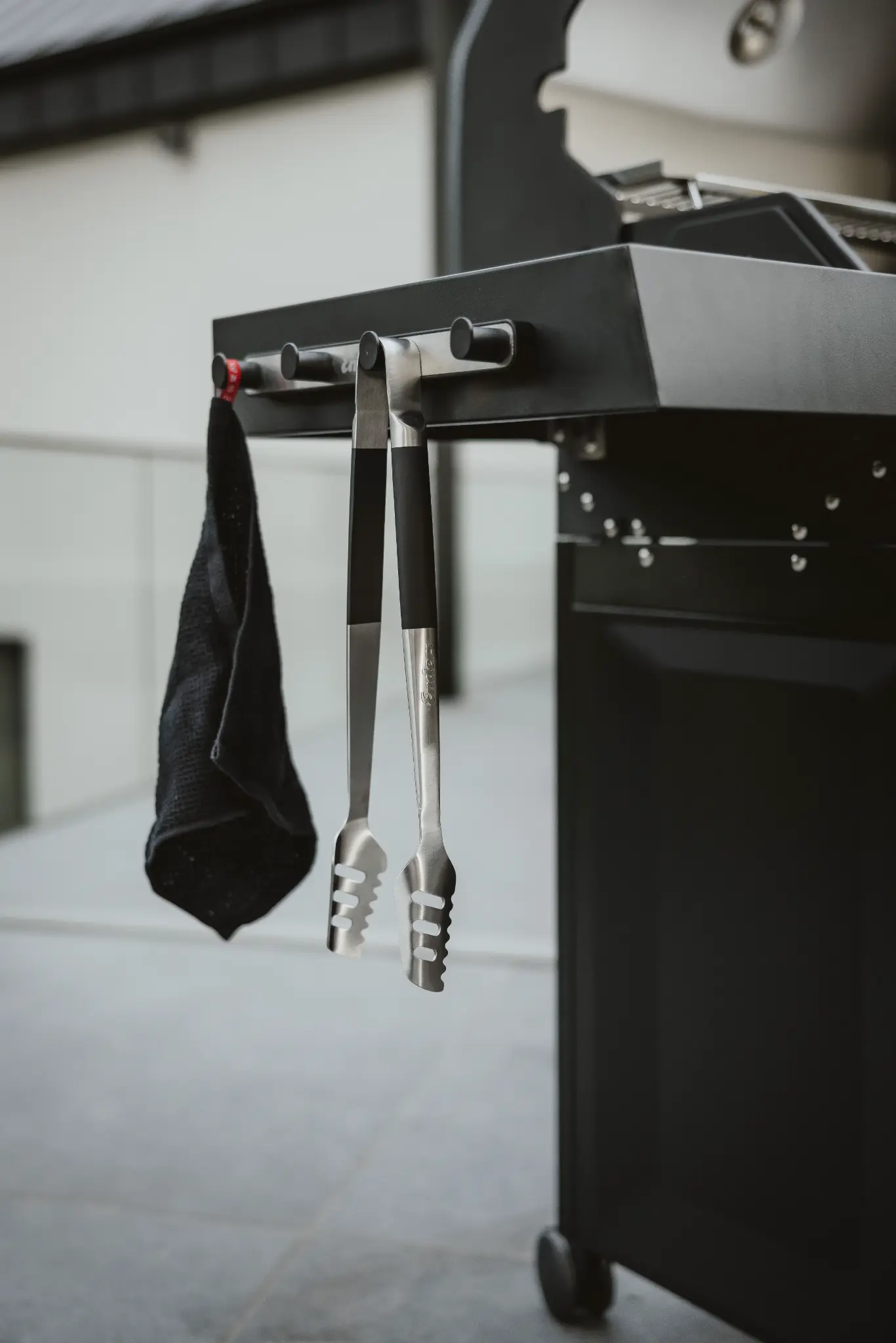 Praktischer Halter für Grillbesteck mit starken Magneten für sicheren Halt. Modernes Design mit Edelstahl-Blende.